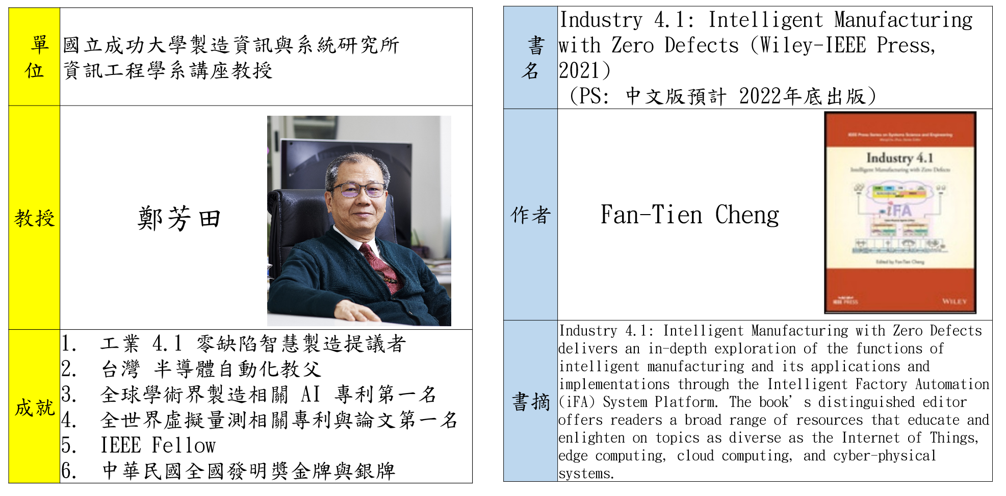 工業 4.1 零缺陷智慧製造提議者: 鄭芳田 教授