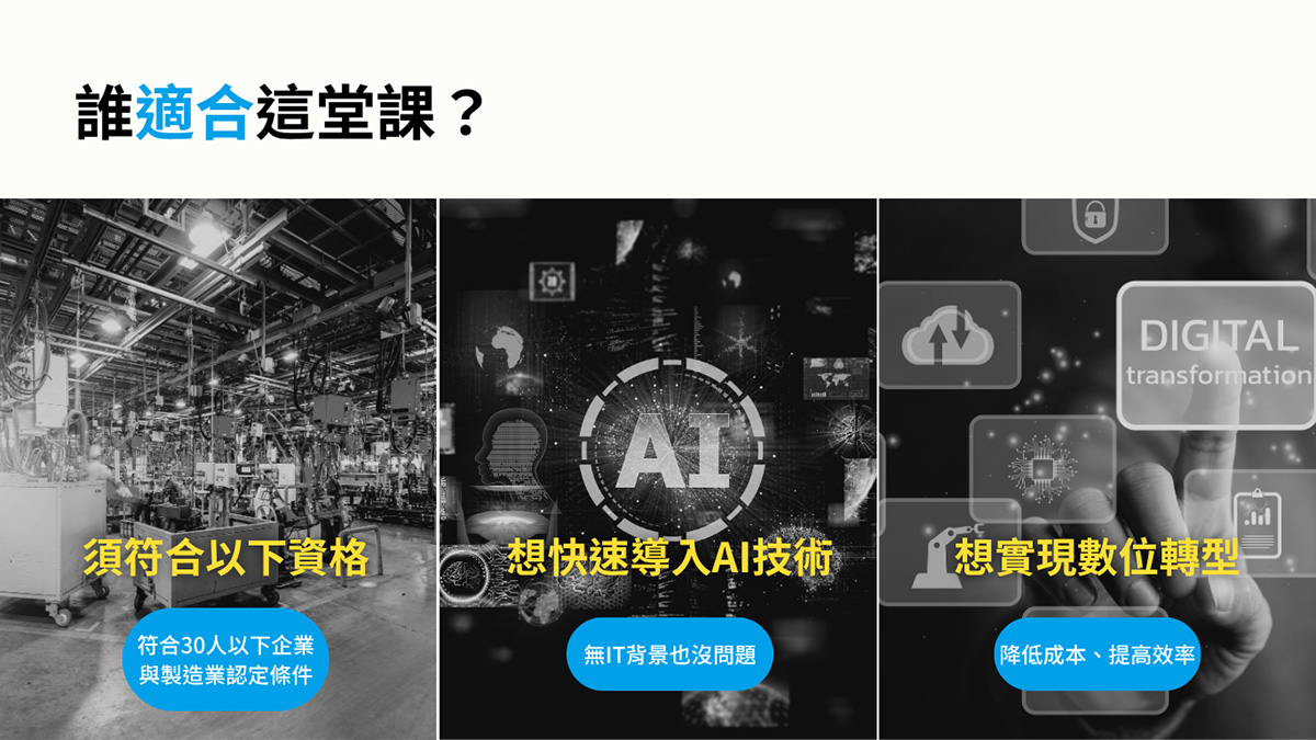 專為30人以下製造業者量身打造的AI+數位轉型課程
