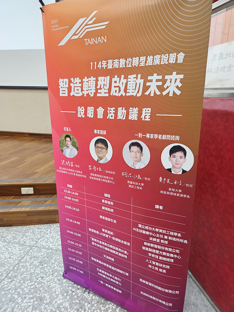 先知科技受邀出席臺南市政府經濟發展局主辦的 「114年臺南市產業數位轉型應用計畫」說明會,活動於成功大學舉行,聚集了產官學研的專家與產業人士,共同探討數位轉型的契機。