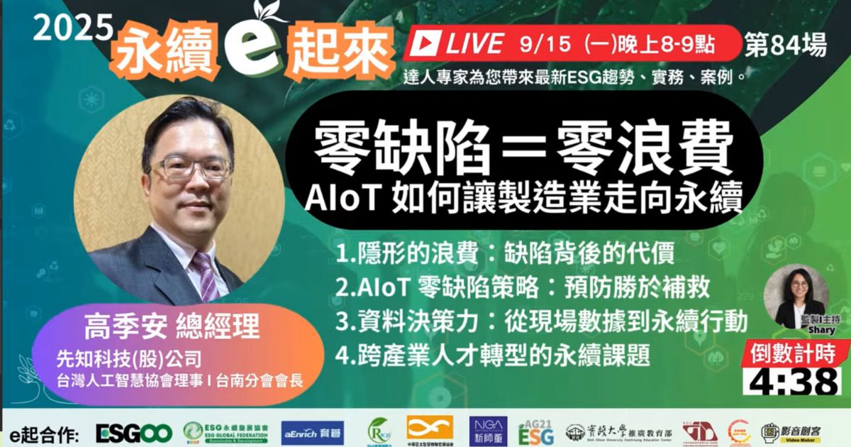 先知科技受邀《永續e起來》直播,分享「零缺陷=零浪費 | AIoT引擎啟動製造業的永續競爭力 !」